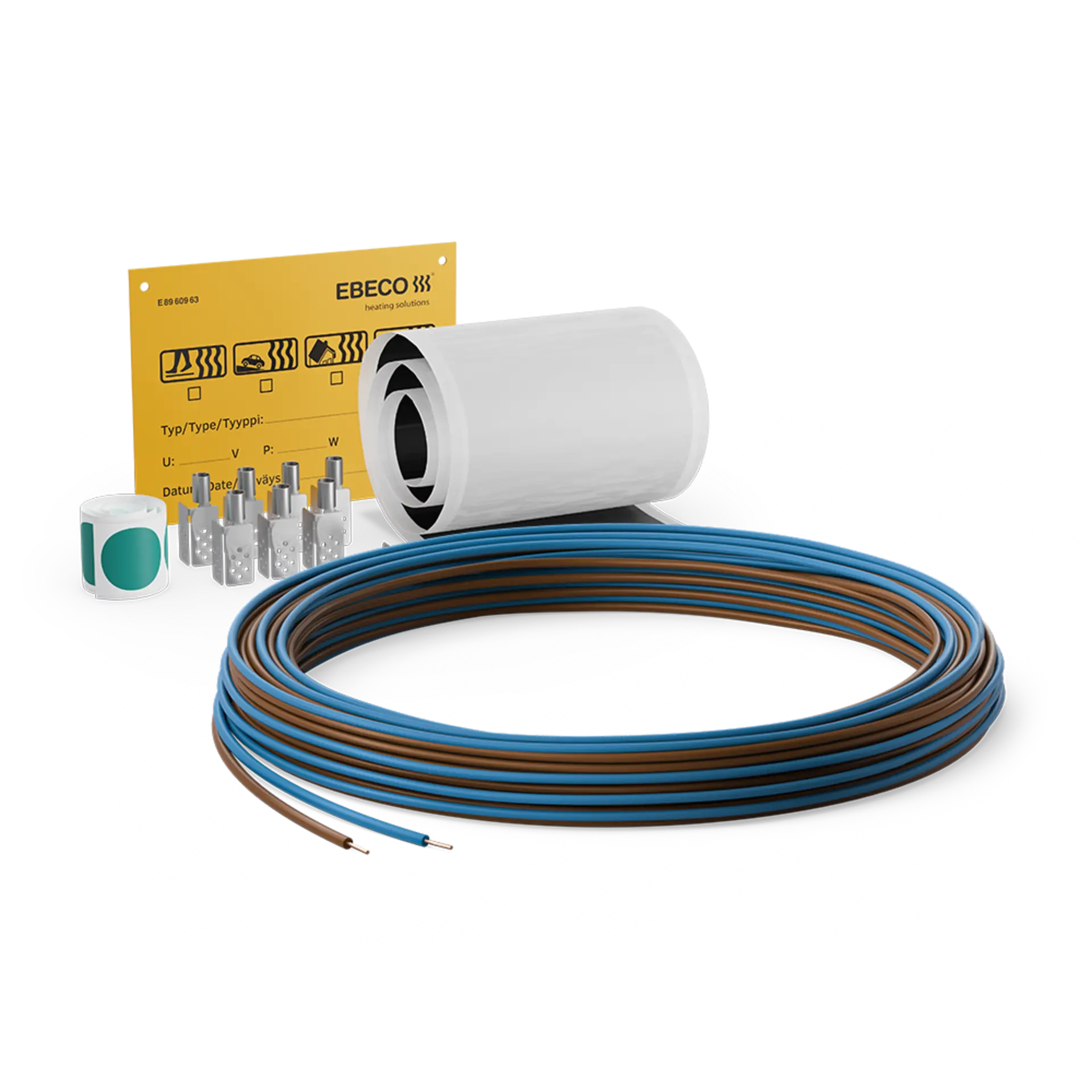 Täydellinen lisävarustesarja Ebeco-lämmityskalvon asentamiseen. Sisältö: kaksoiseristetty RTK-kaapeli, kytkentäliittimet, eristysteippi, tiivistysteippi, keltainen merkki, tarra ja asennusohjeet.