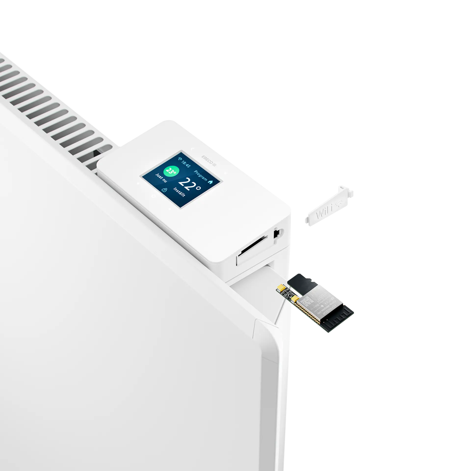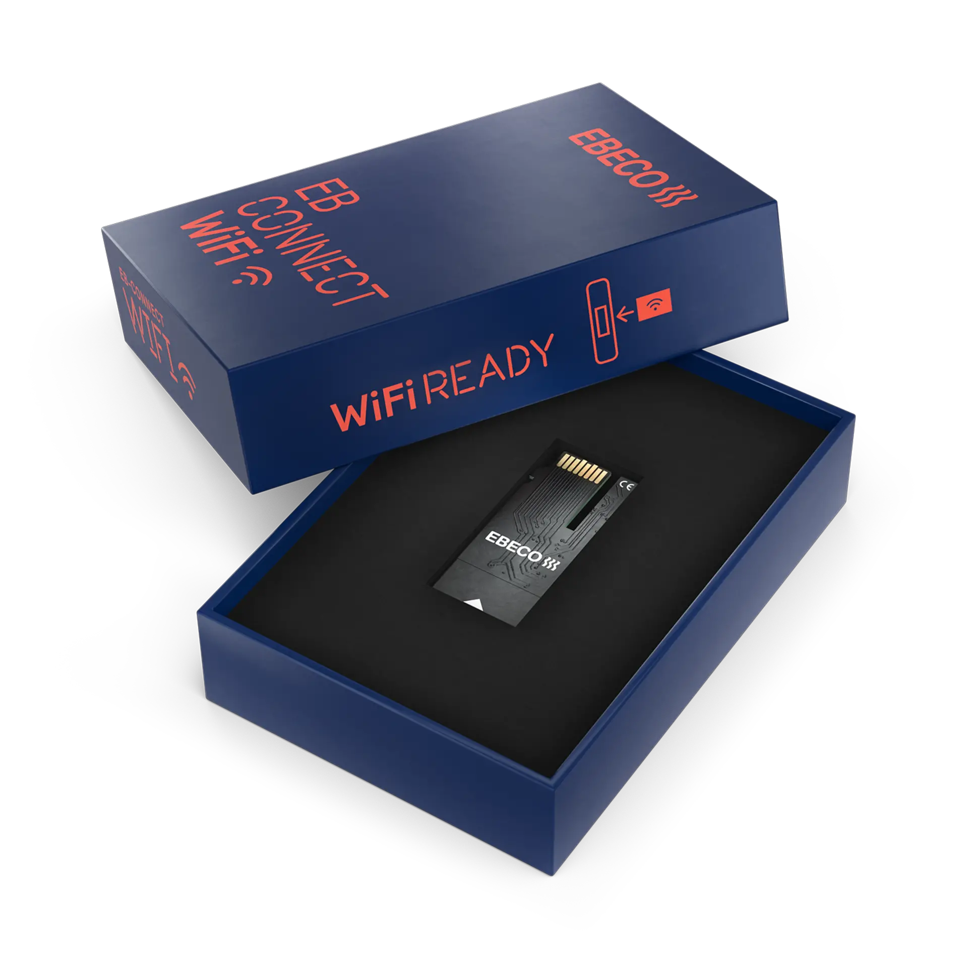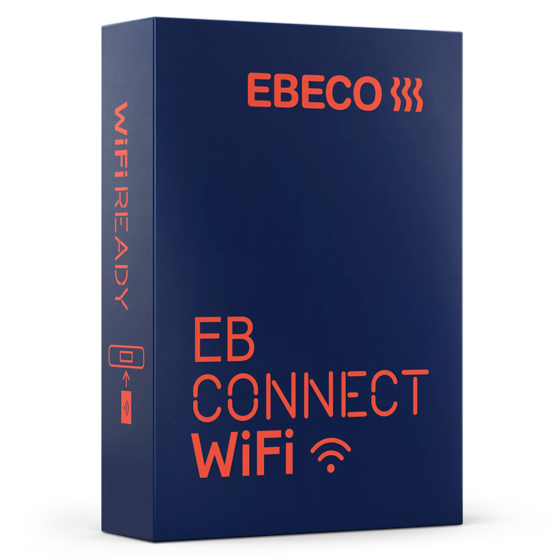 EB-Connect WiFi on tärkeässä roolissa WiFi READY -konseptissamme. Helposti termostaattiin asetettavan Wifi-moduulin avulla EB-Therm 500 ja sähkökonvektori Wallflex 500 kehittää voidaan järjestelmäksi, jota voidaan ohjata Ebeco Connect -sovelluksen tai avoimen API:n kautta. Sovelluksessa sähkönkäyttö esitetään selkeästi samalla kun vuosikalenteri ja hälytykset push-ilmoitusten tai sähköpostien kautta ovat saatavilla. Termostaatin kaikki toiminnot ovat käytettävissä sovelluksesta.
