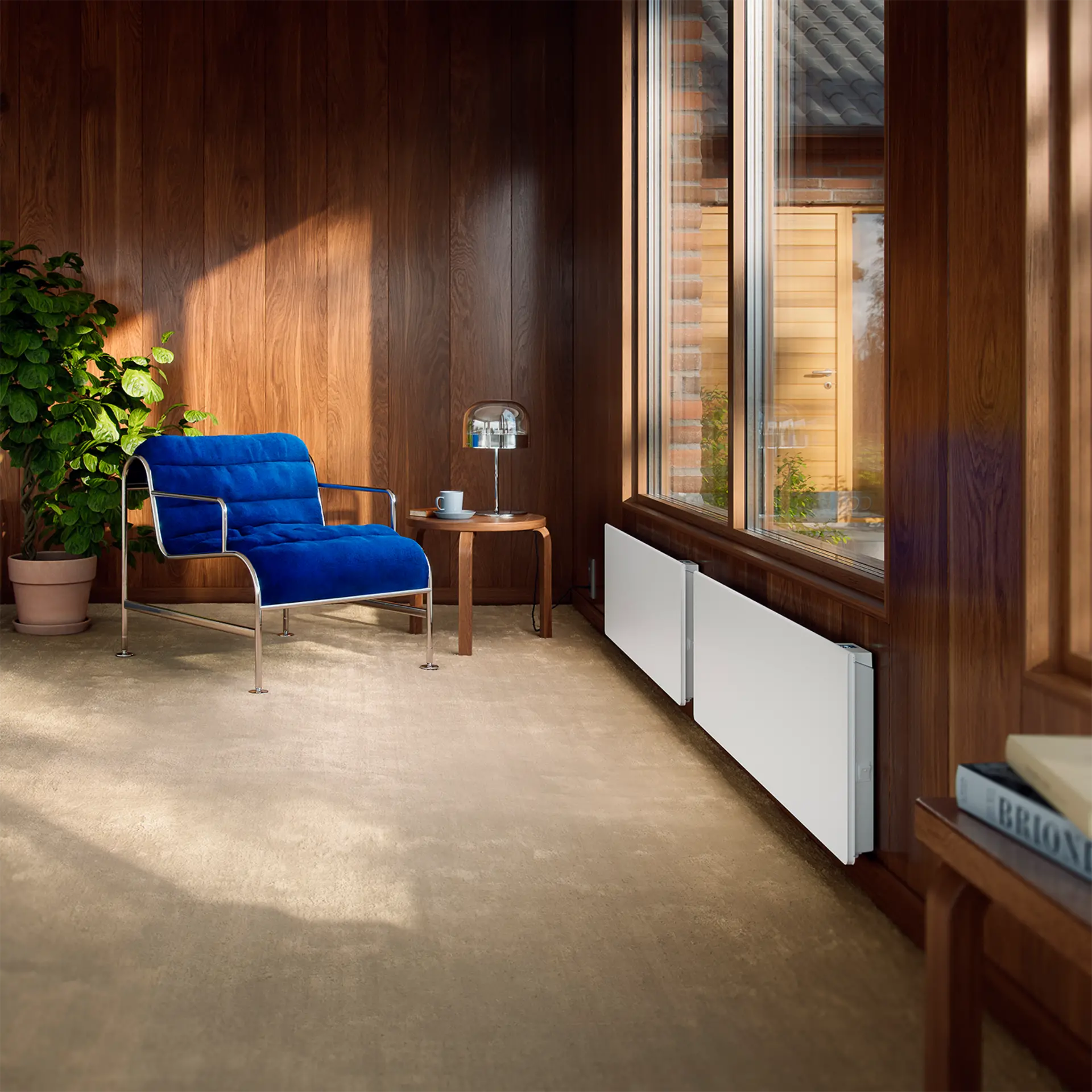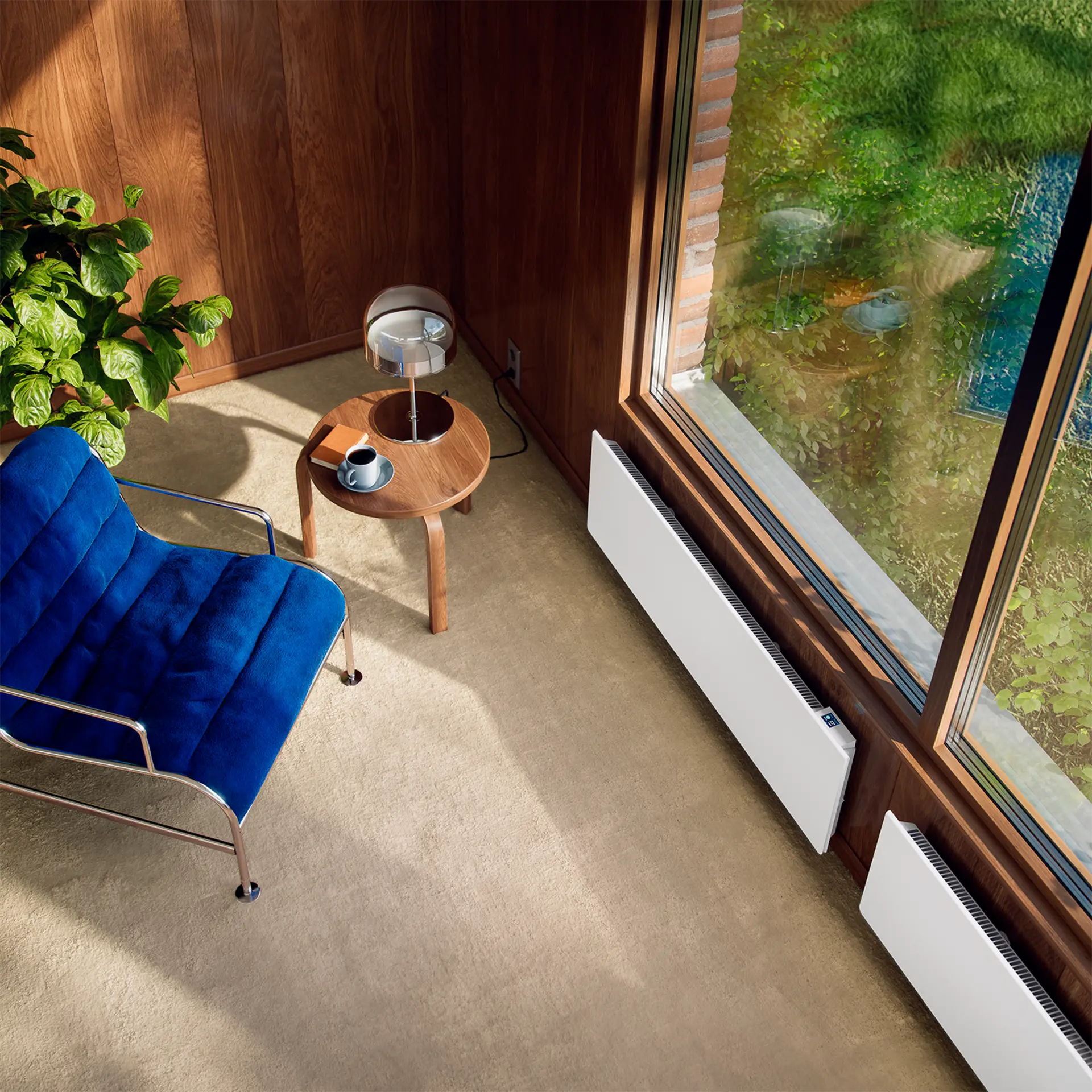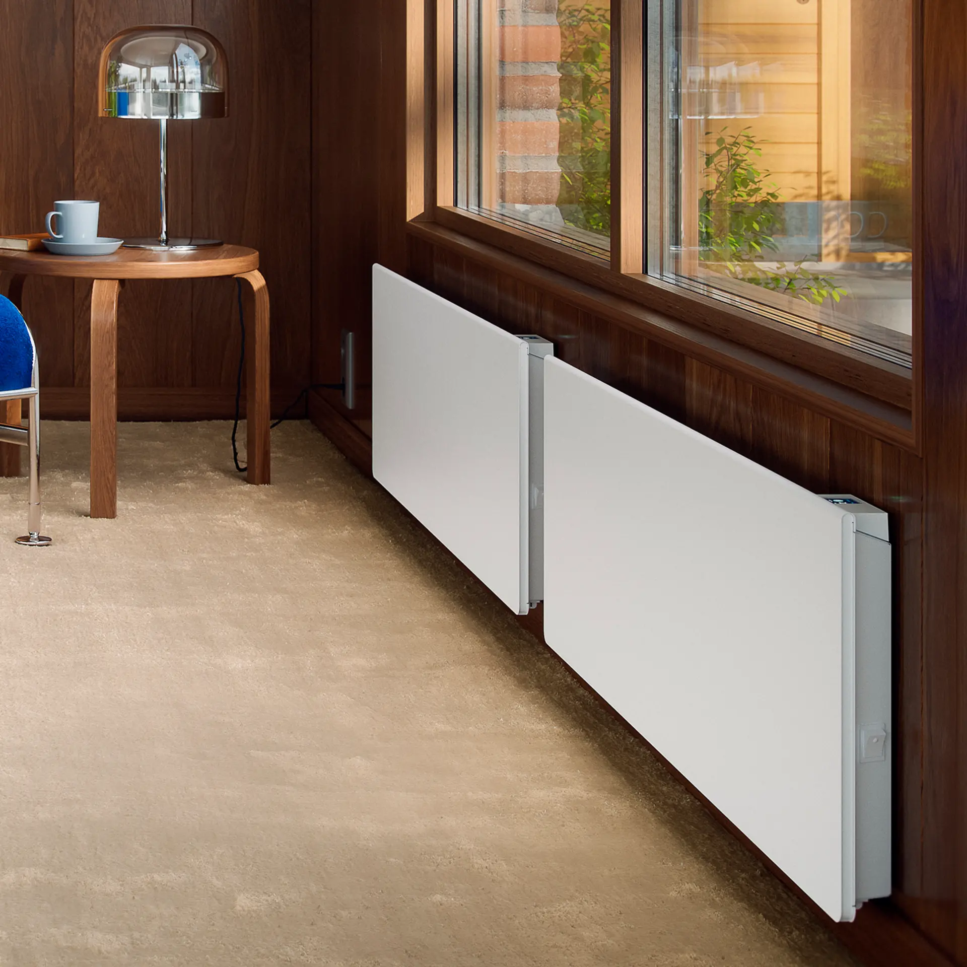 Sähkölämmitin integroidulla Wifi:llä ja värinäytöllä. Integroidun termostaatin avulla voidaan asettaa useita yksilöllisesti säädettäviä energiansäästöohjelmia, siinä on yksinkertainen ja selkeä navigointi, ja se näyttää energiankulutuksen ja historian. Mahdollisuus näppäinlukkoon ja lapsiturvalliseen lämpötilarajoitukseen (max 60°). Voidaan ohjata etänä Ebeco Connect -sovelluksella ja integraatioiden, kuten Google Home, Tibber sekä avoimen API:mme, kautta. Toimitetaan pistokkeen ja jakorasian kanssa.